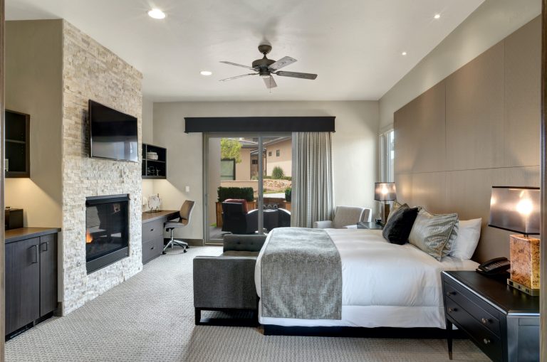 Find your peaceful and luxurious retreat with a nature-inspired design, limestone-clad fireplace, spa-like bathroom, and a comfortable king bed with a flat-panel TV. It can be booked alone or as part of a 2- or 3-bedroom suite.
