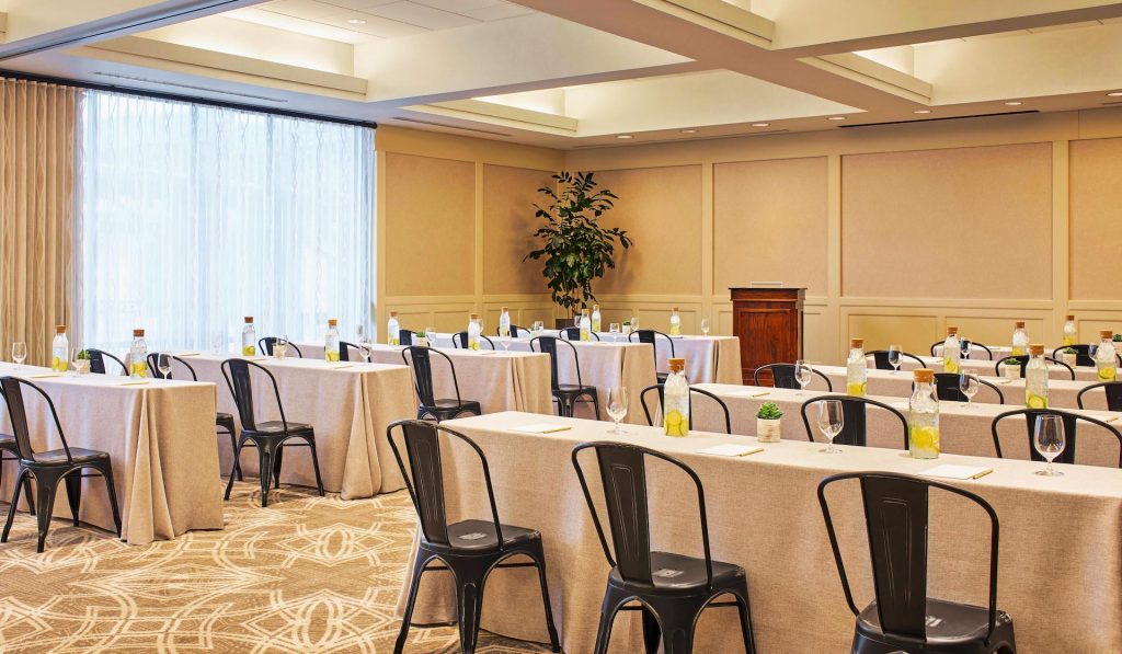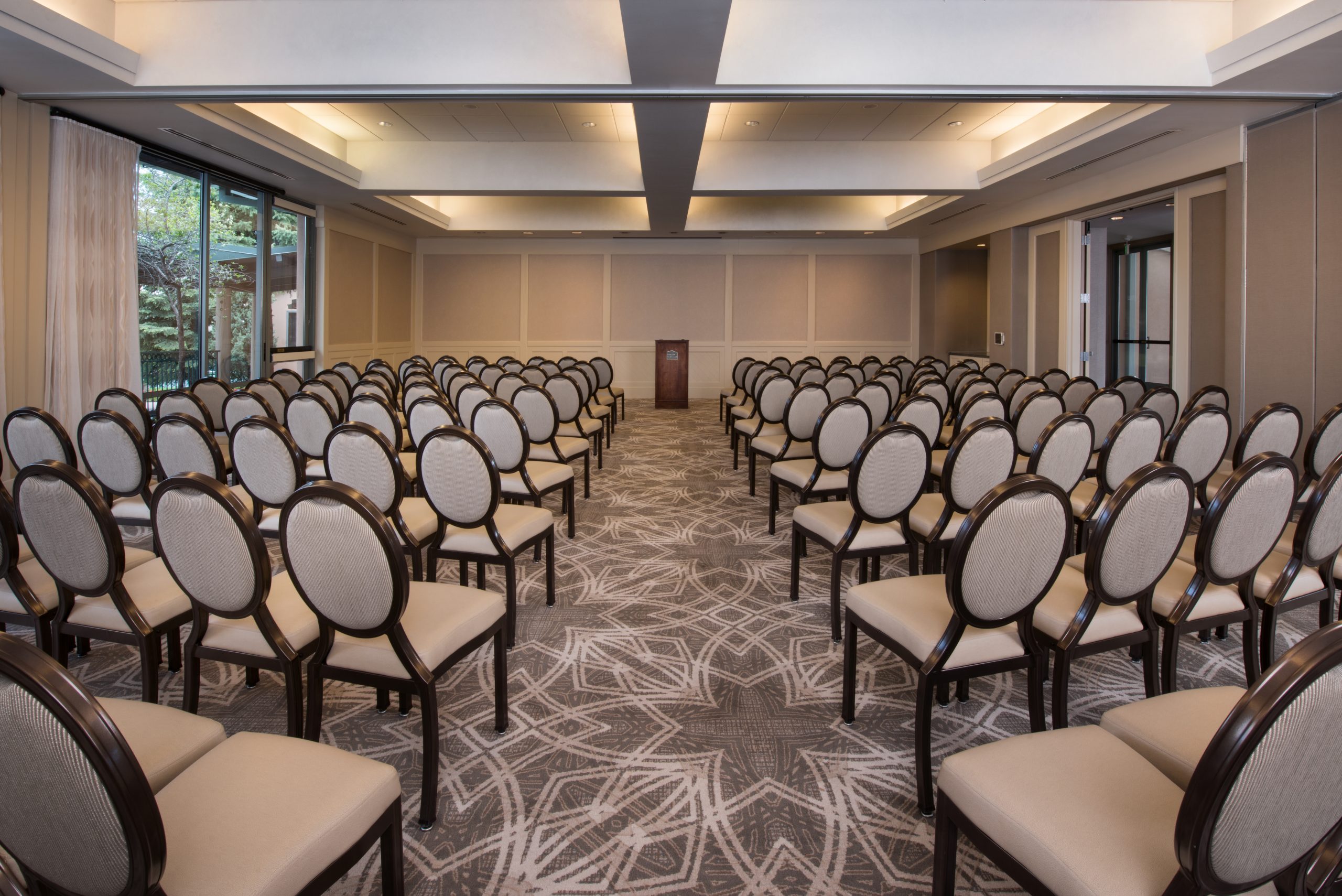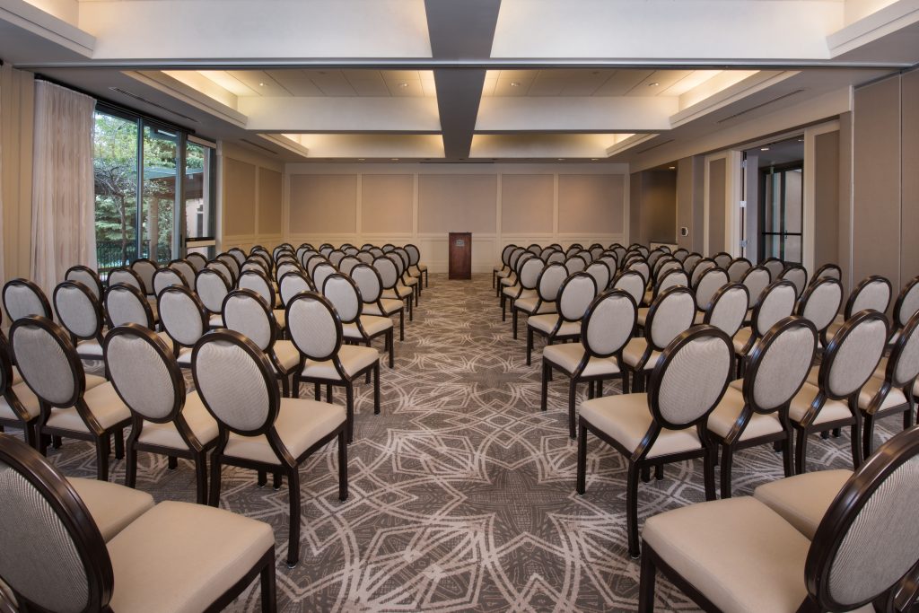 An elegant, windowed ballroom, the Garden Room can accommodate up to 150 guests and approximately 100 guests for a seated dining event. The room can also be divided for smaller groups of up to 75 guests.